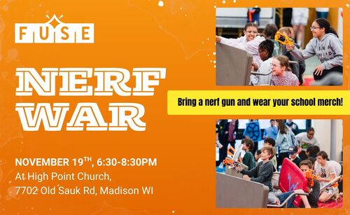 Youth Nerf War and Fellowship: On Wednesday, November 19th, at 6:30 PM, FOL Middle and High School Students are invited to a Nerf War, put on by FUSE, a collaboration of youth ministries in the city. Snacks, nerf games, board games, worship led by an interchurch band, and a talk by Pastor Marcio Sierra from Lighthouse Church are lined up for the evening! Let Pastor Tyler know if you'd like to go, and he will share more details.